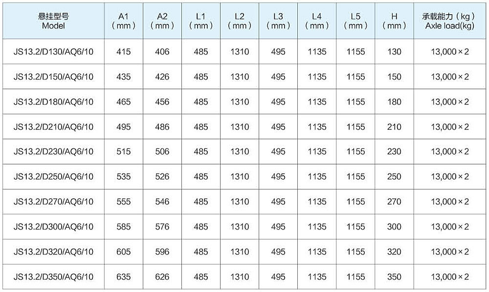 JS13.2/AQ6型两轴10片(90*13*10)板簧悬挂系列