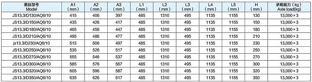 JS13.3/AQ6型三轴10片(90*13*10)板簧悬挂系列