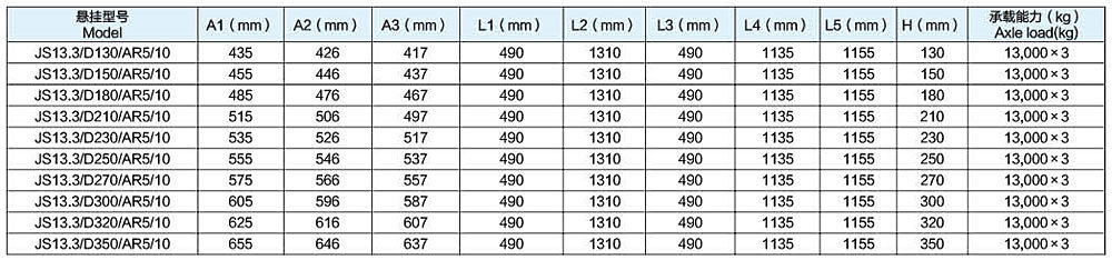 JS13.3/AR5型三轴10片(90*13*10)板簧悬挂系列