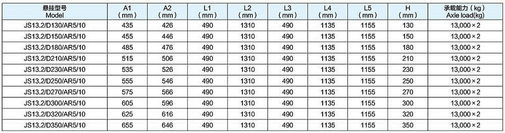 JS13.2/AR5型两轴10片(90*13*10)板簧悬挂系列