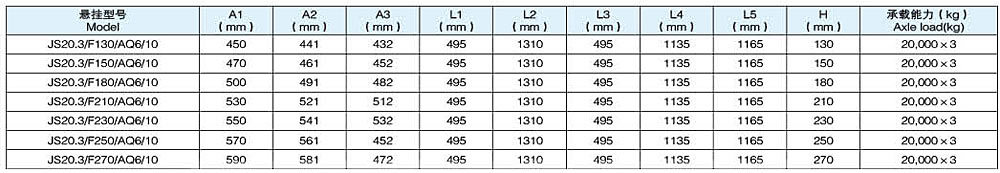 JS20.2/AQ6型两轴10片(120*16*10)板簧重型悬挂系列